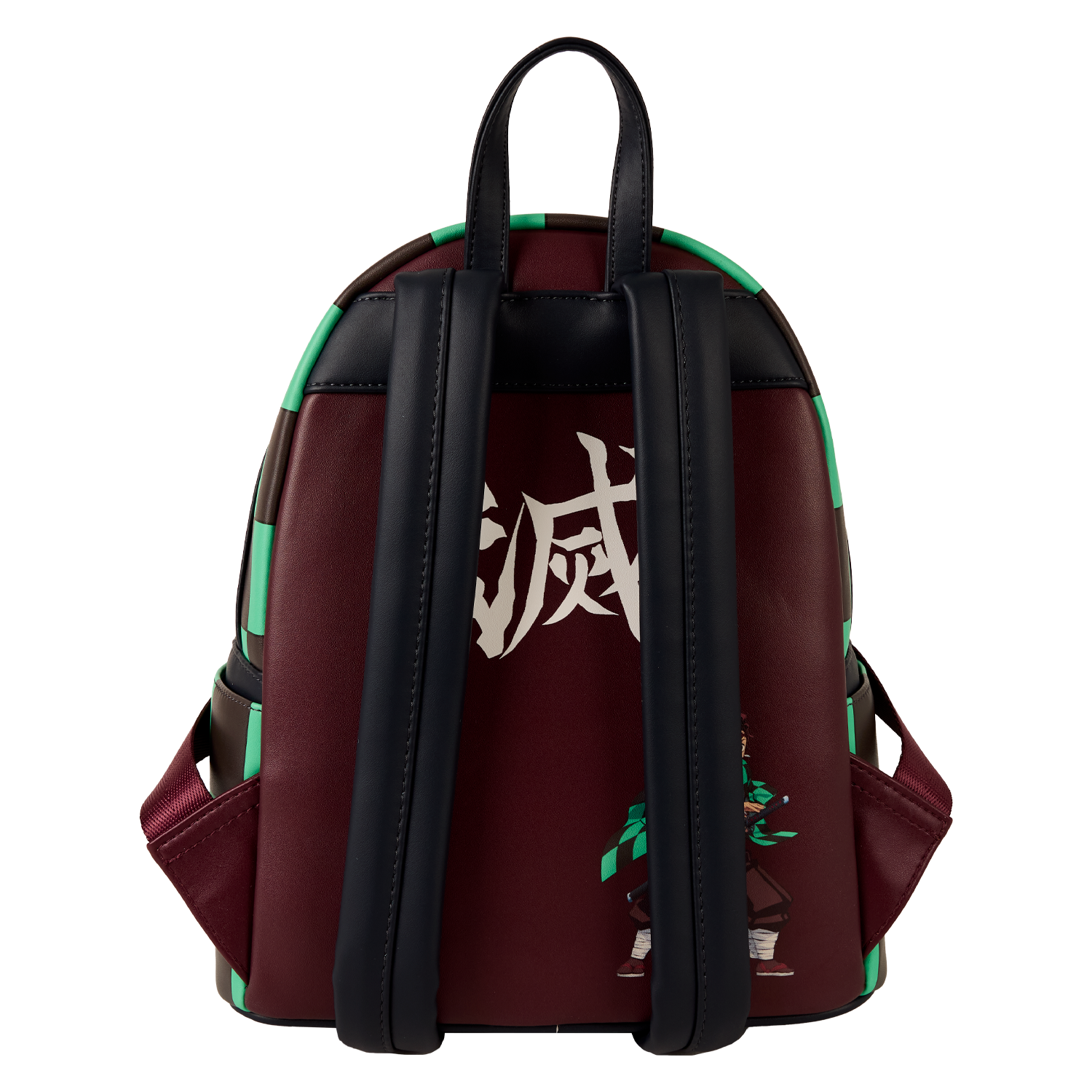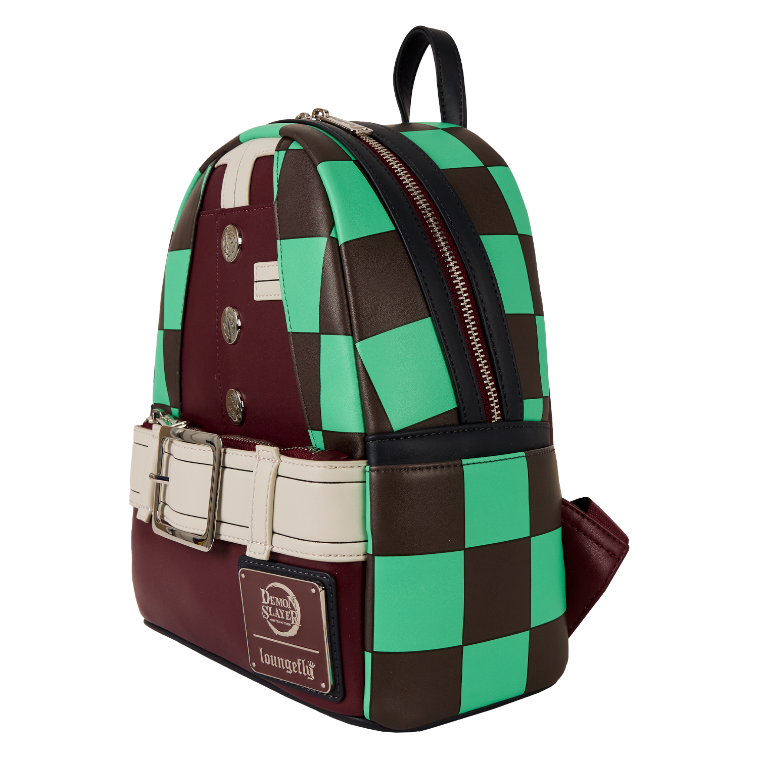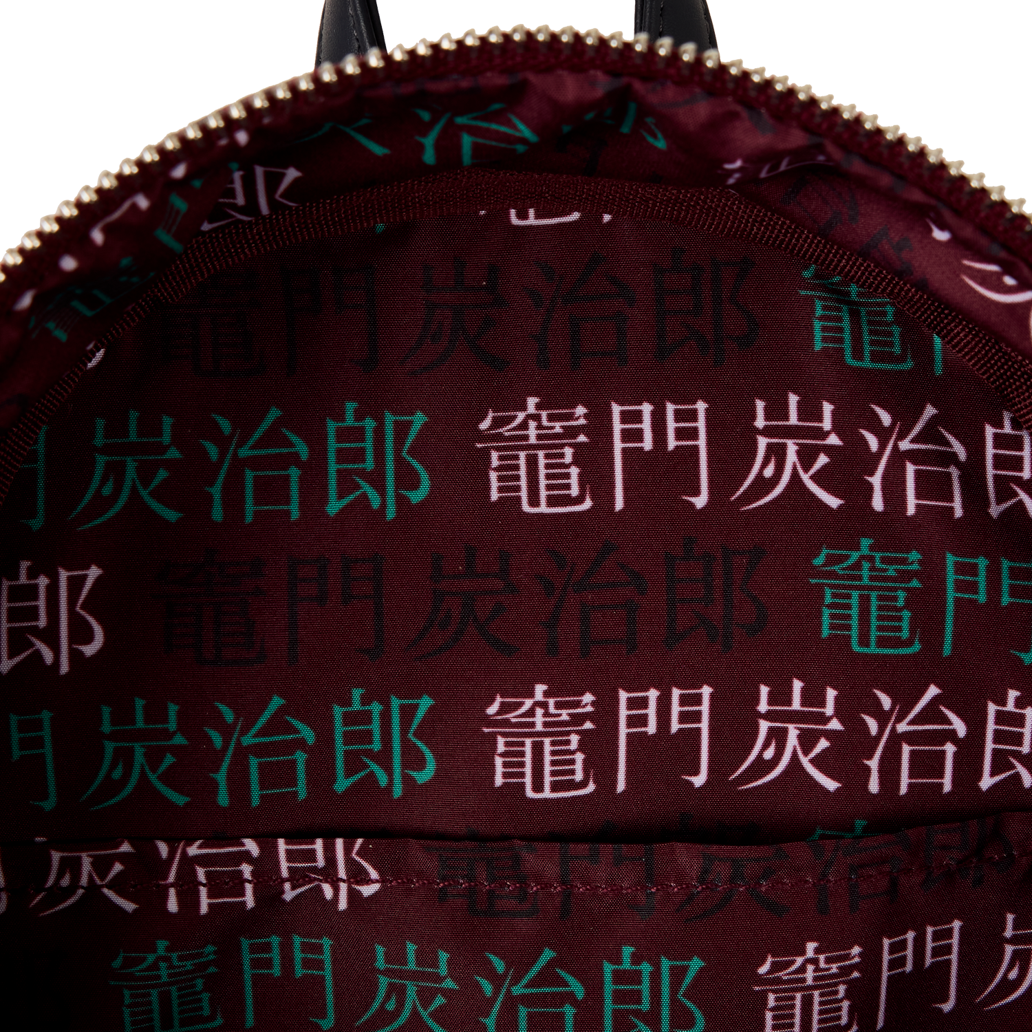 This mini backpack is inspired by the ensemble of Tanjiro Kamado, complete with metal charm buttons and debossed details on his belt. The black-and-green checkered print of his ensemble continues onto the side pockets. On the back, you’ll find an illustration of Tanjiro Kamado!