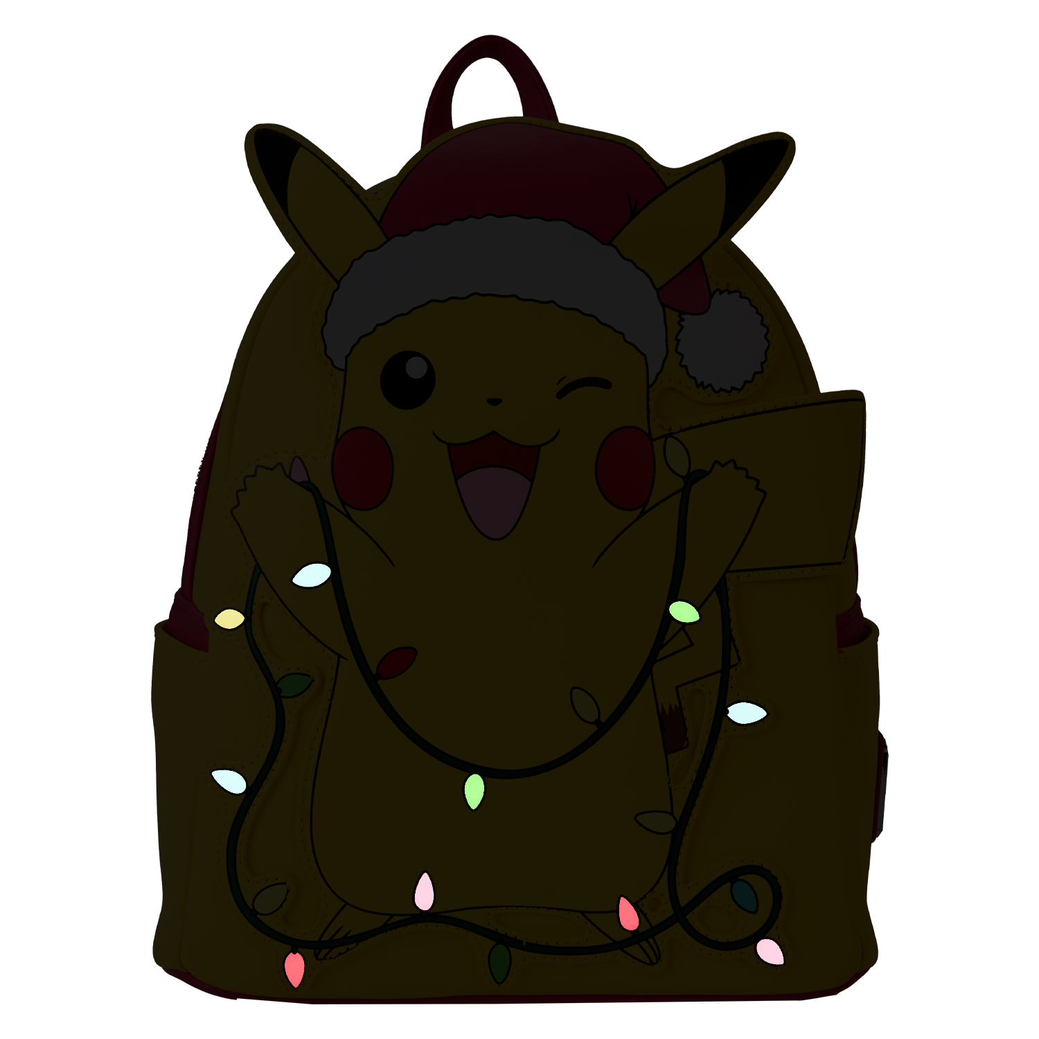 Warm winter wishes for a bright and shining holiday! Pikachu is ready to join your festivities as he appears on this mini backpack. Dressed in a red hat, he holds a strand of colorful lights that illuminate with light-up features. Add this accessory to your merrymaking fun for a cheerful twist on winter traditions!