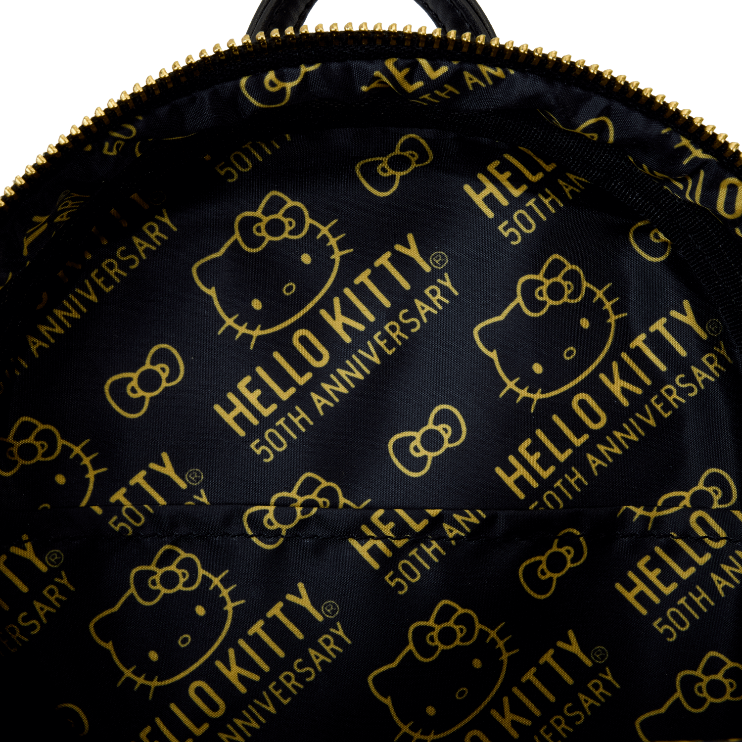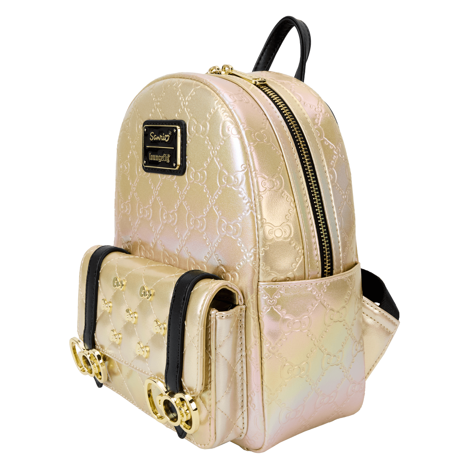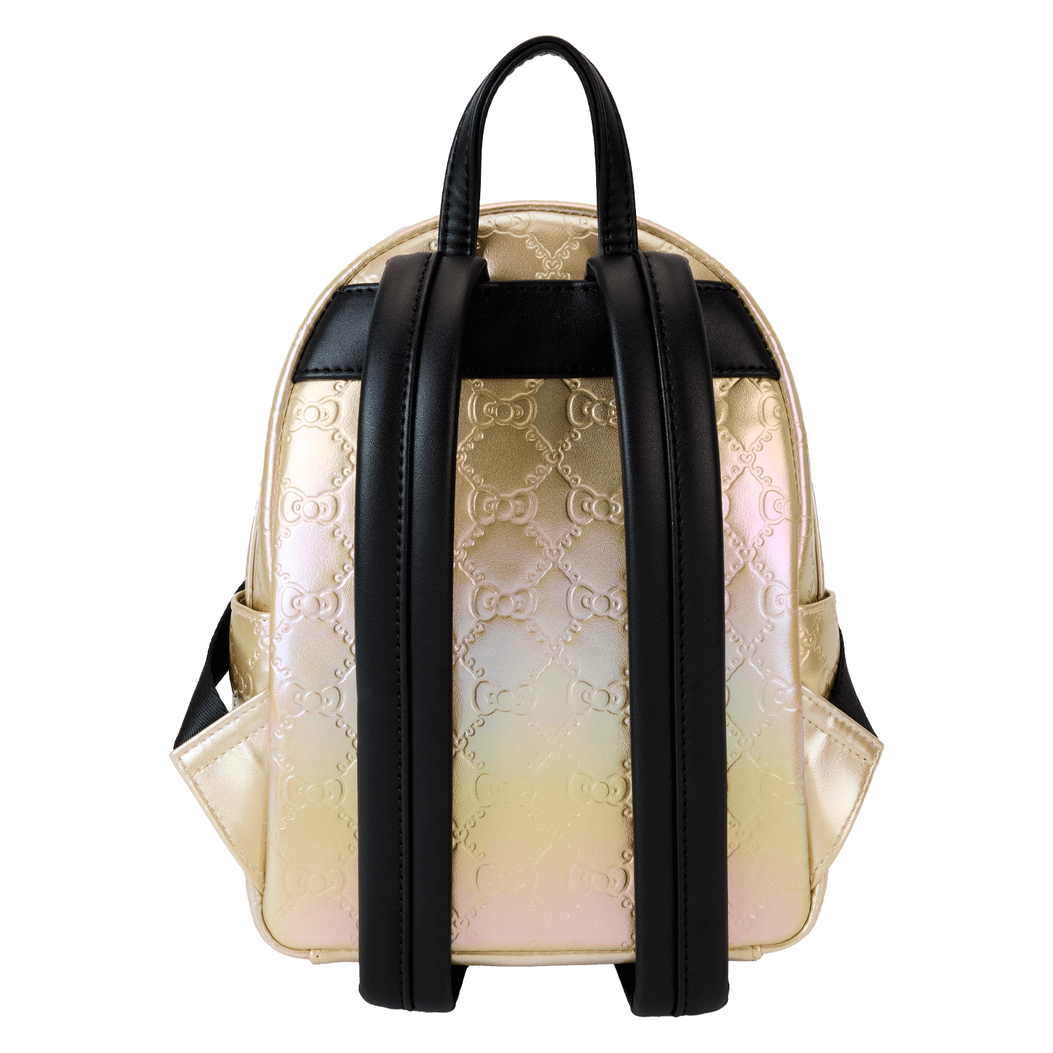 This pop icon is celebrating 50 years of timeless style! Look to the future with Hello Kitty as she commemorates her golden anniversary. With a metallic debossed design, molded metal buckles, and a quilted front pocket, this mini backpack makes an elevated statement piece for any outfit.