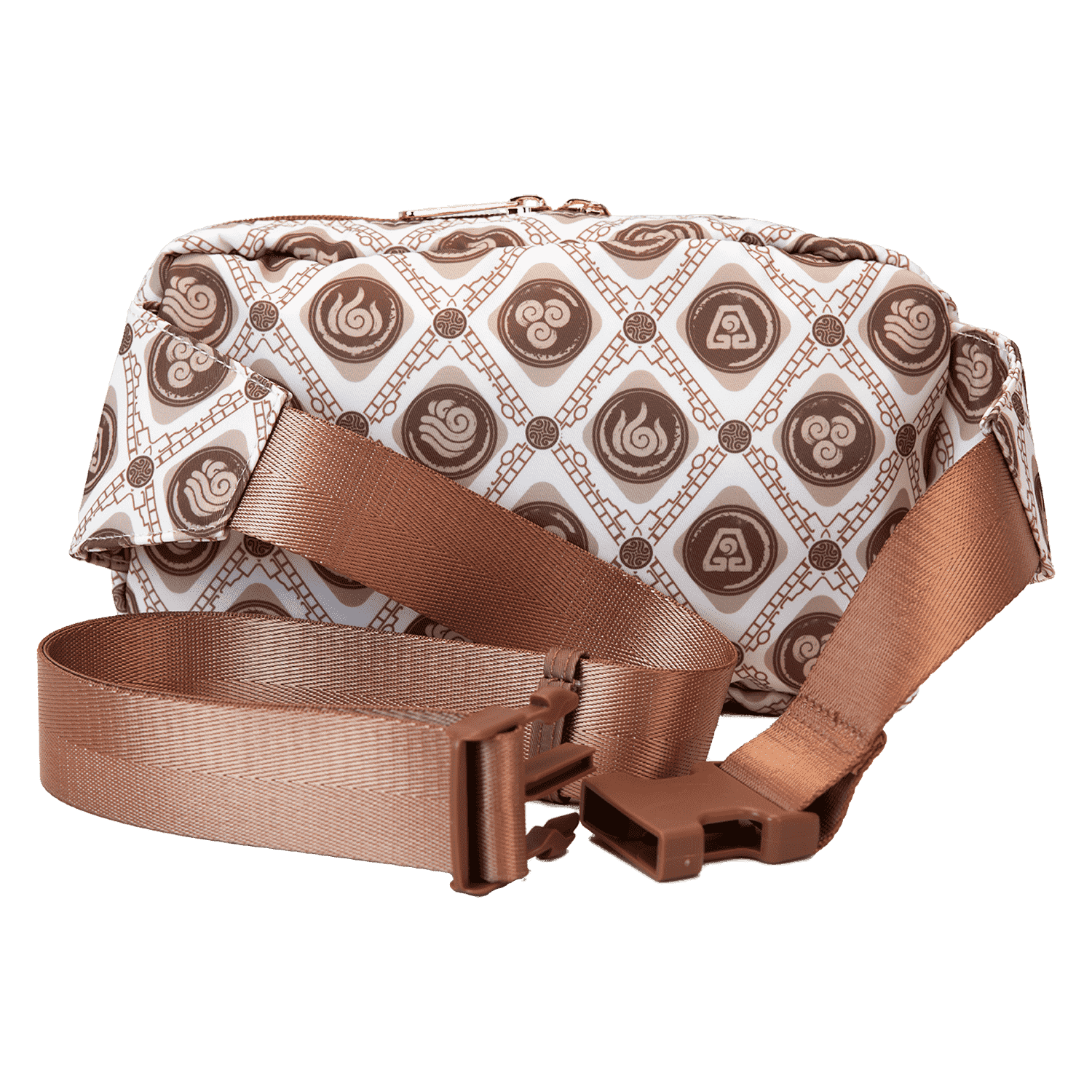 Brave the elements in style! Take along this Avatar: The Last Airbender sling bag. This convenient bag, in neutral tones, features a motif of all the symbols, and a silicone zipper charm of Aang tops off the look. Keep your daily essentials close by and soar through adventures with this fashionable accessory.