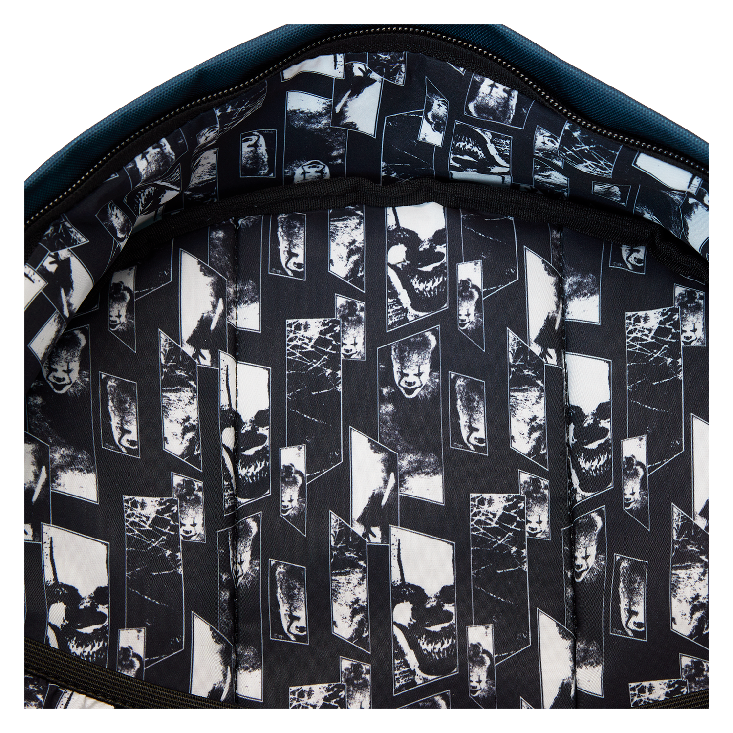 Finish it for good—your look, that is. Head to Derry in style with our IT: Chapter 2 full-size backpack. The front features eerie prints of Pennywise the Clown in red and as “photo negative” images. In the dark, everything in white glows, including Pennywise’s eyes above the front zipped pocket. There’s plenty of room in this backpack to secure everything you need for chasing down adventures with a few good friends.