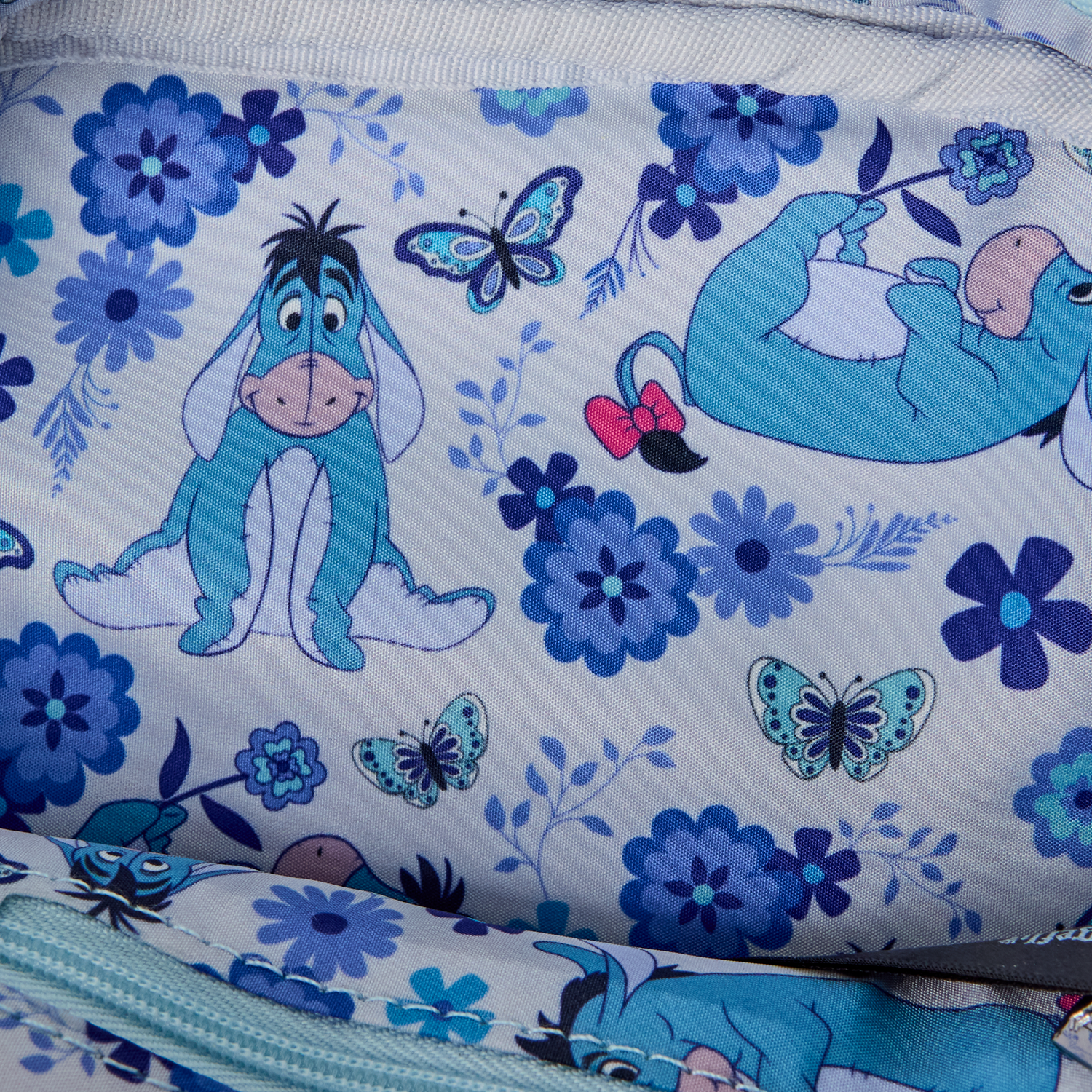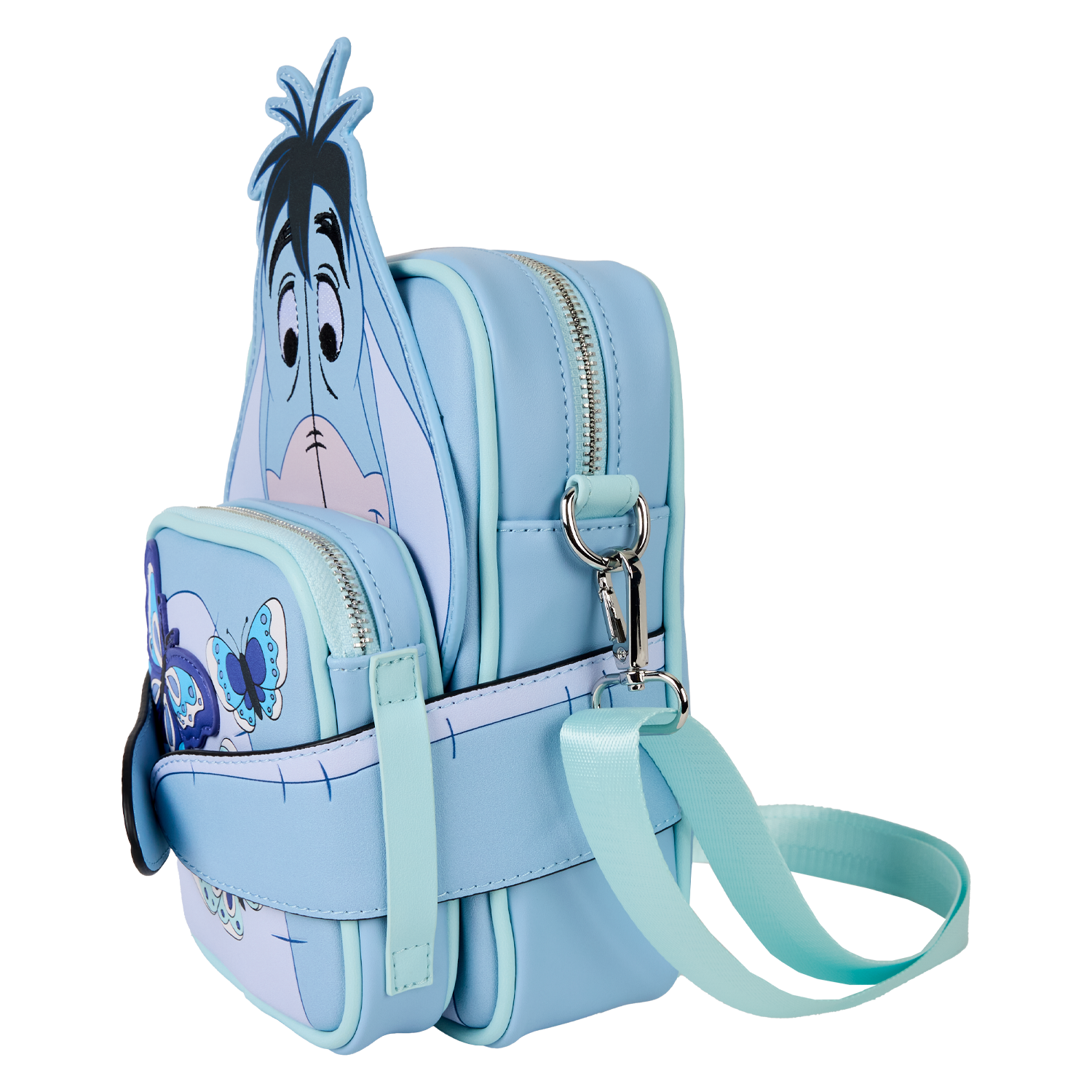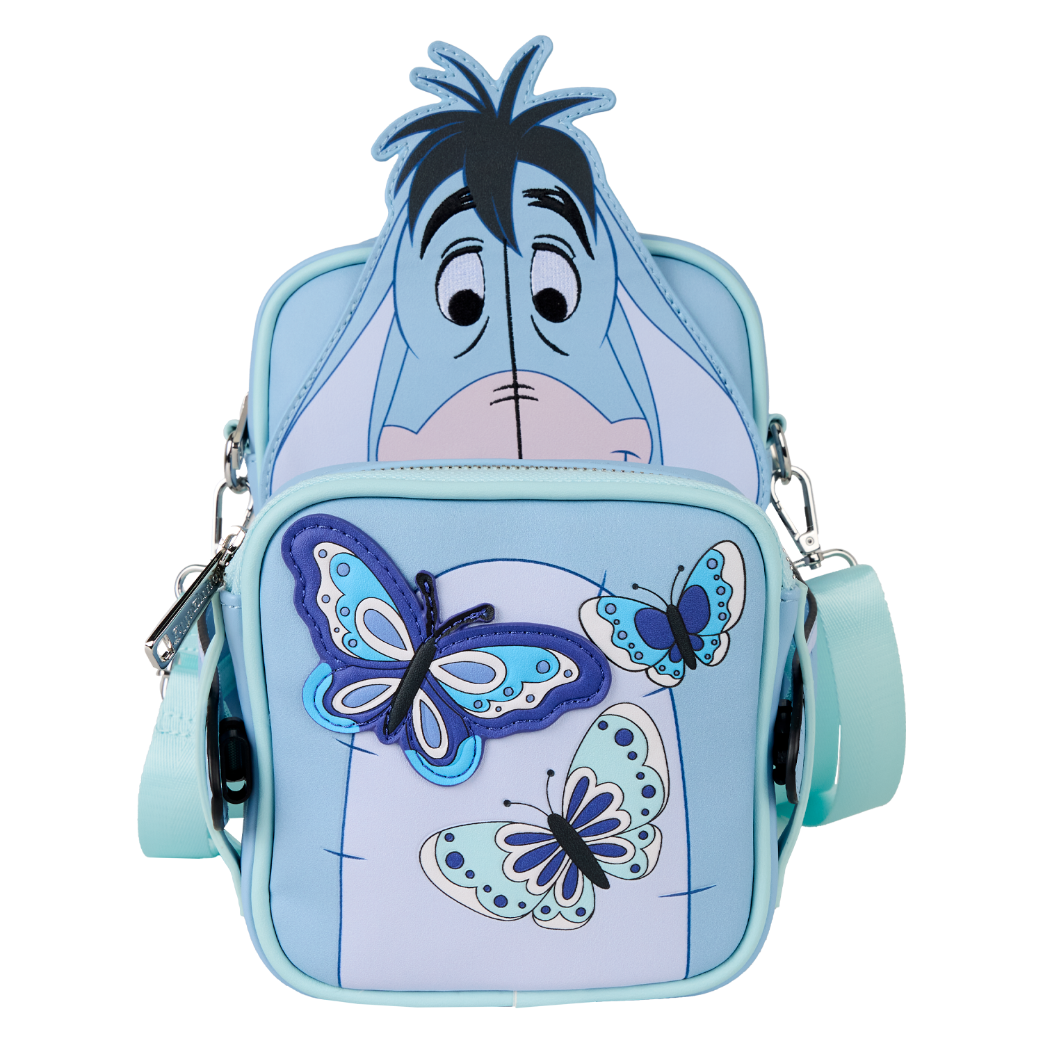 Show off your love for Eeyore every day with this bag. Find Eeyore as an applique on the bag with his arms hugging a removable and reversible coin bag. One side features butterflies and the other side features flowers – so you can switch up your look whenever you’d like!