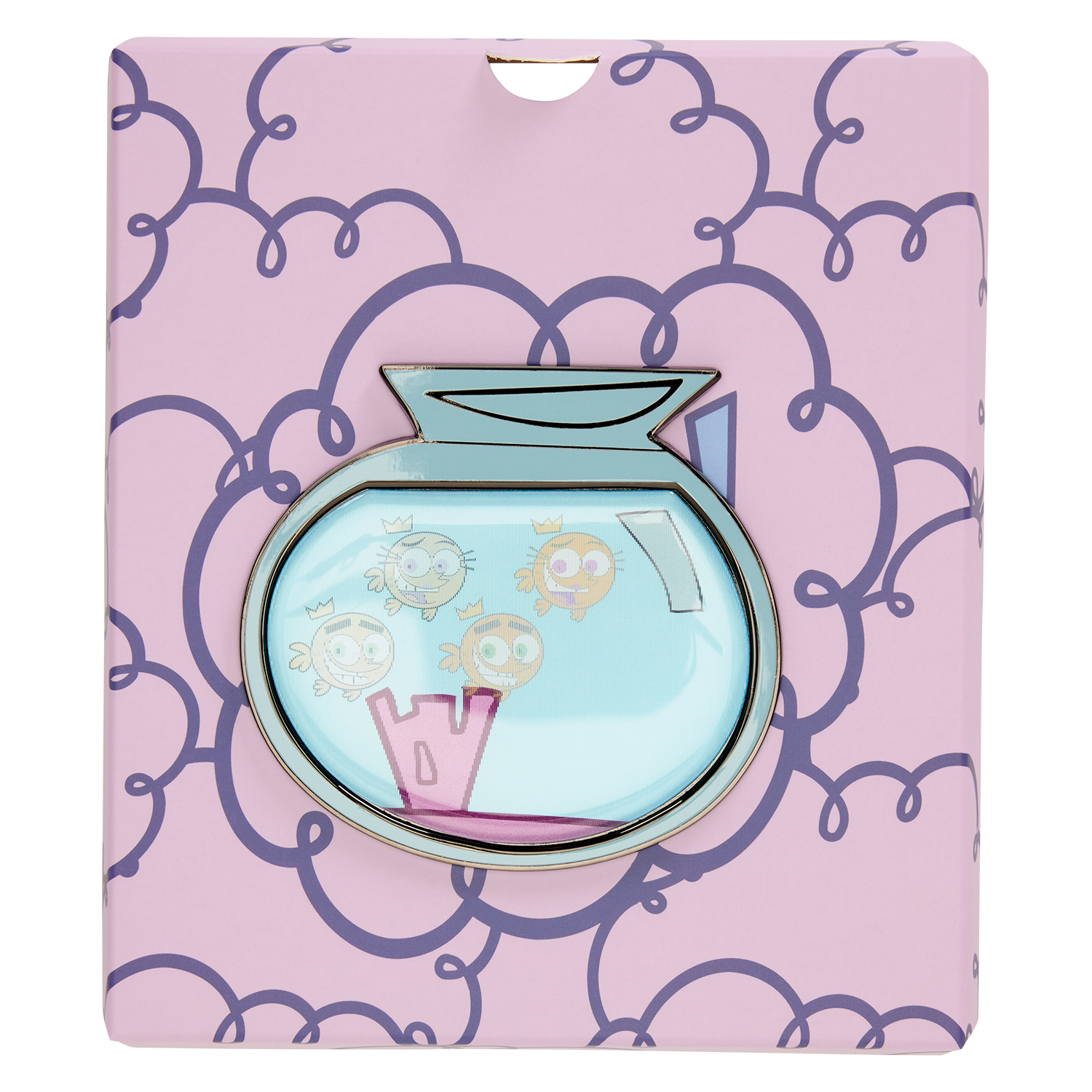 This 3″ collector box pin features Cosmo and Wanda as goldfish in a bowl. The pin features an epoxy dome and a lenticular feature that shows Cosmo and Wanda “swimming” in the bowl! This pin is limited edition 700, making it an extra special piece to collect and display!