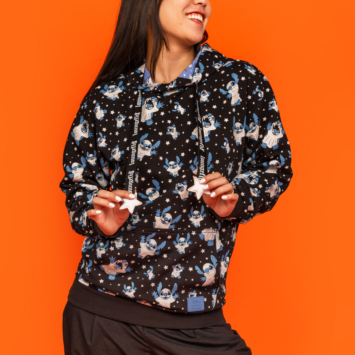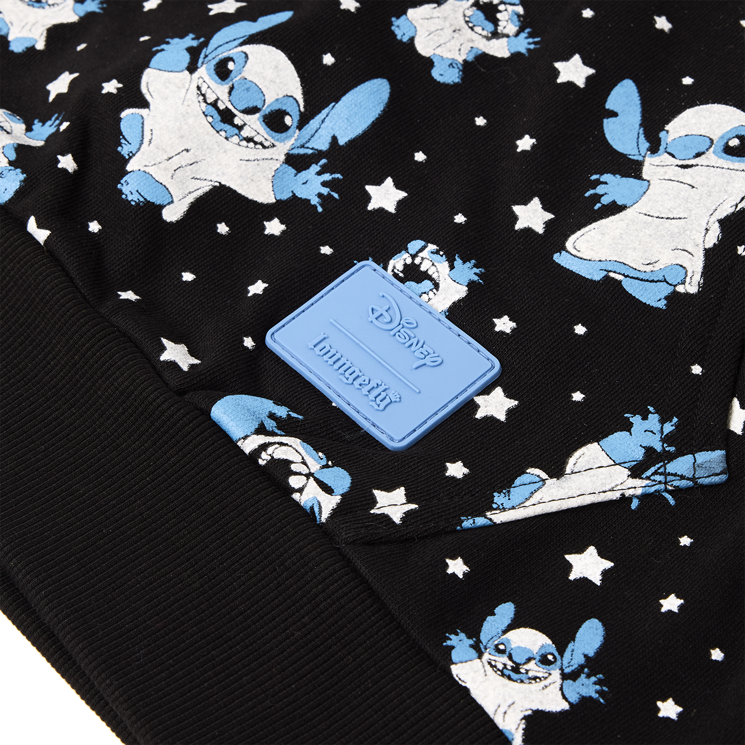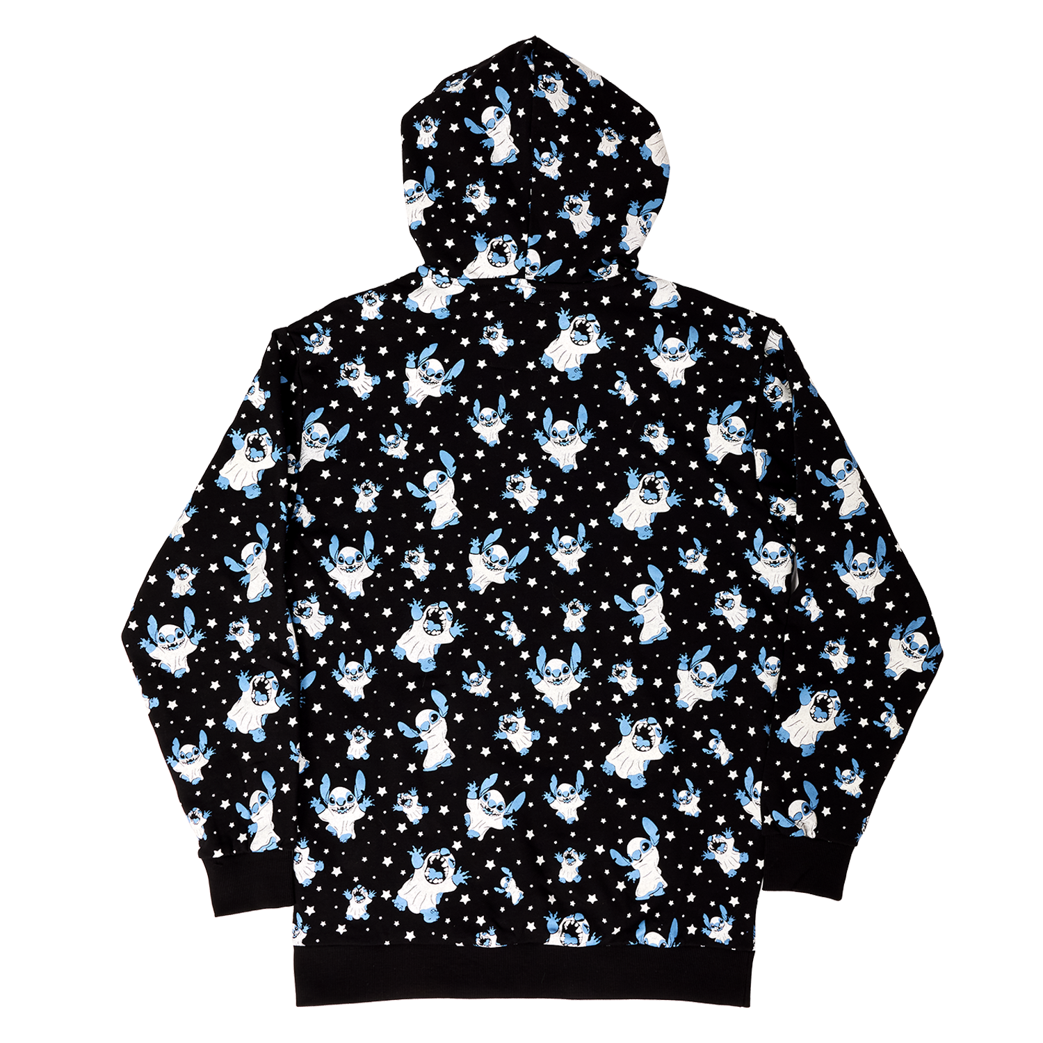 Ready to cause some mischief? Stitch has dressed the part for a surprise on this scary-fun hoodie. Look closely to see Stitch make some frightening faces as he floats under a starry sky, and turn down the lights to see the design glow in the dark! This hoodie makes a cozy addition to any outfit and is perfect for Disney fans looking to keep one of their favorite characters close.